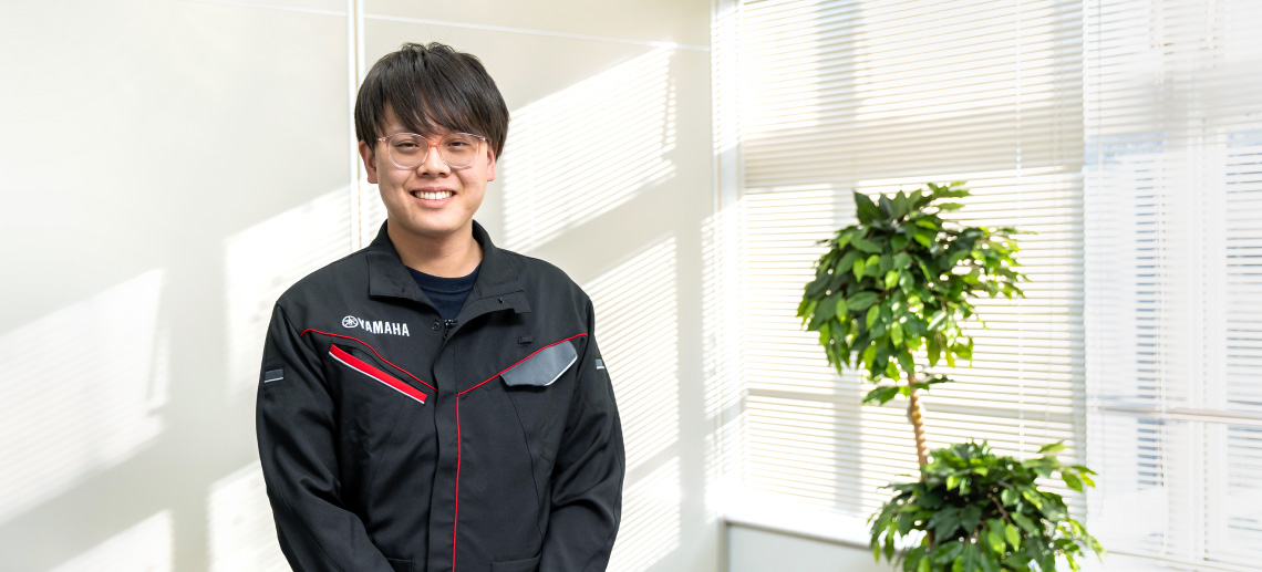 子どものころから新幹線が好きで、大学時代はクルマ、バイクにはまり、「いつか乗り物づくりに関わりたい」と考えていました。大学では人間工学、大学院では生体システム工学を専攻していましたが、研究では音響や振動など“人にとって心地よいもの”をテーマにしていました。その延長でモビリティにも興味を持つようになり、就活では電車・クルマ・バイクの業界に絞って、ヤマハ発動機グループ各社を中心にエントリー。最も早く内定を提示してくれたのが当社でした。コロナ禍の不安な状況で自分を選んでくれたこと、そしてフロントフォークのように “外から見える部品”を担当できることに強く引かれ、ここでチャレンジしようと決めました。